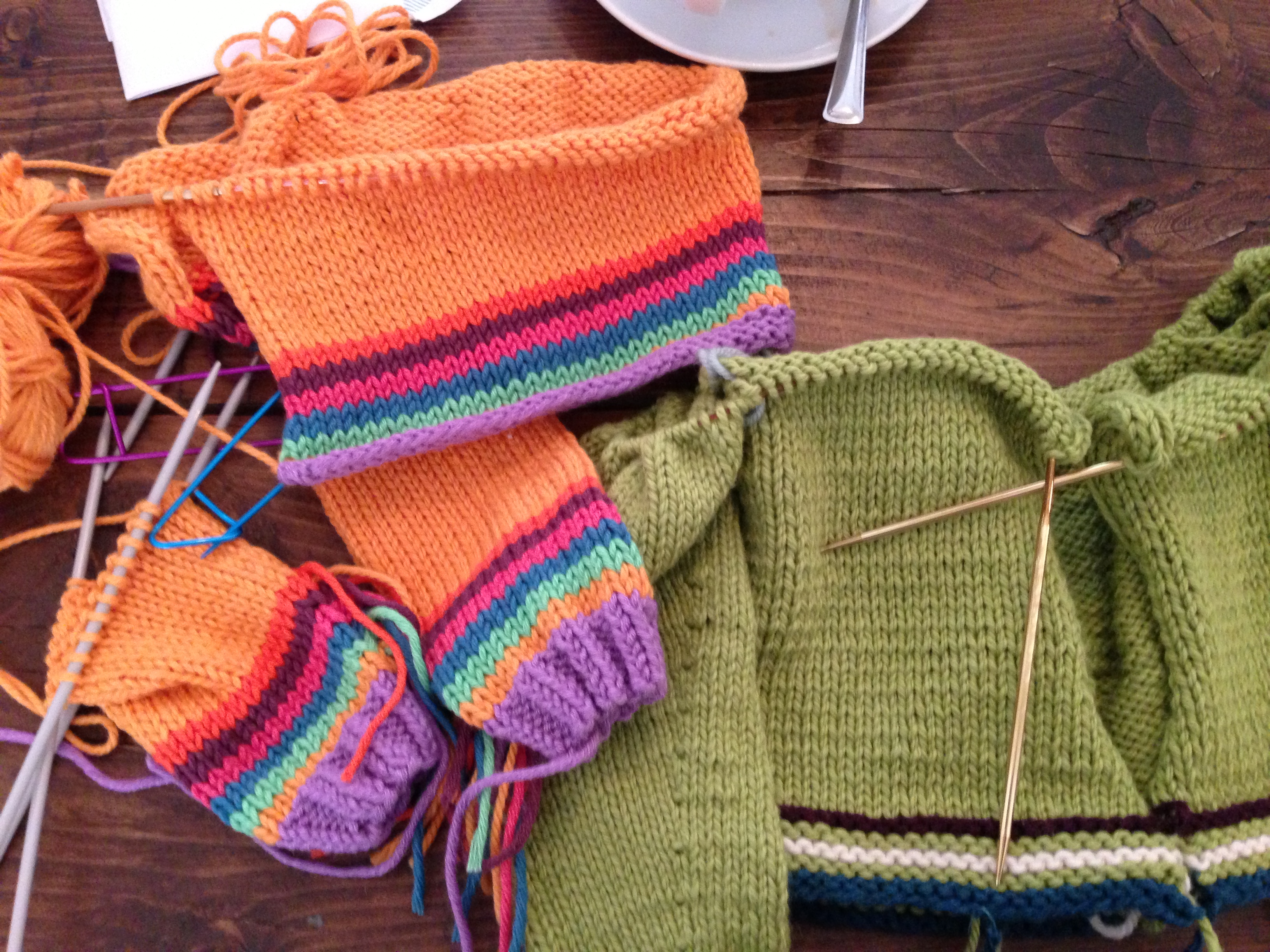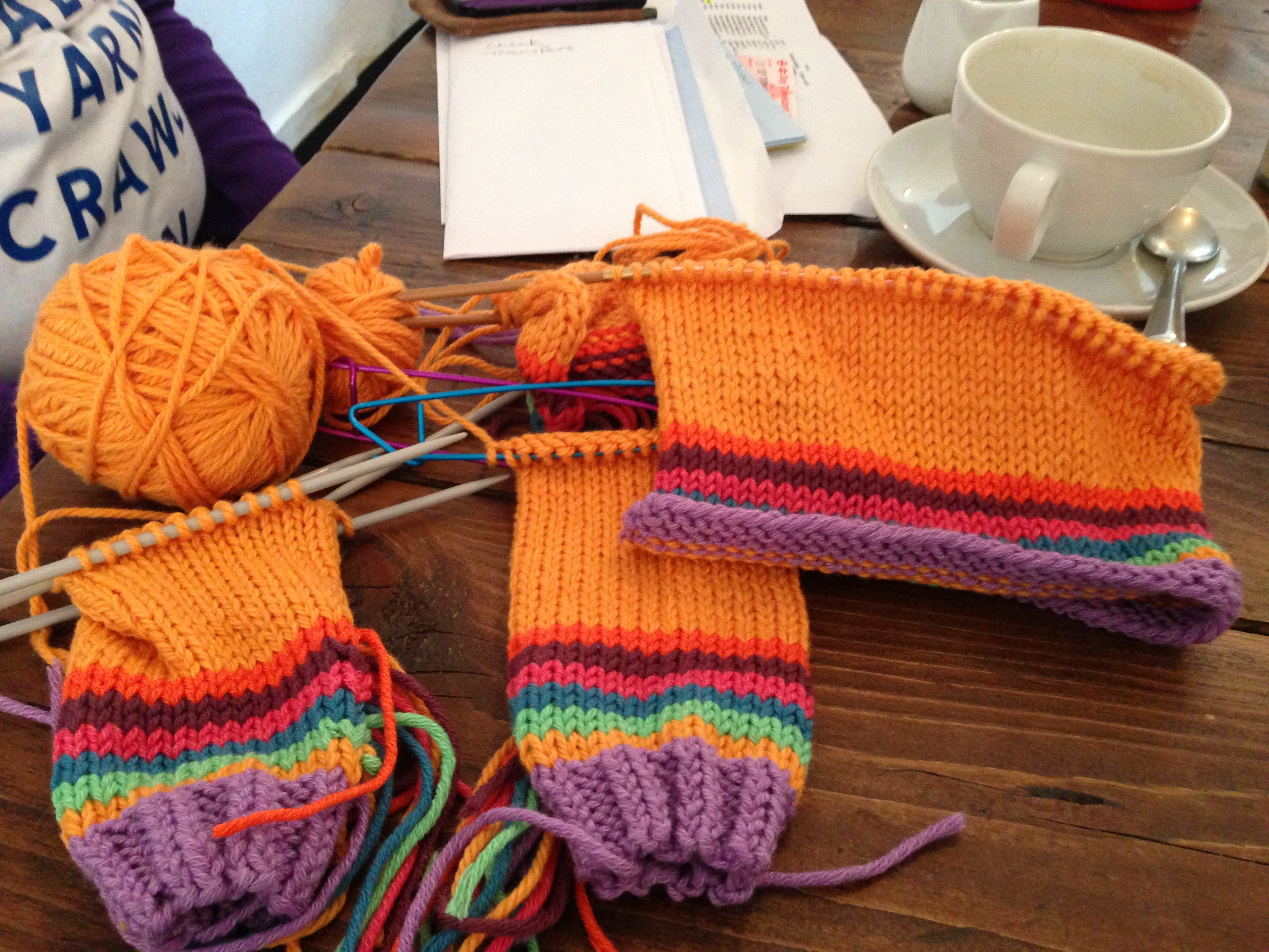 We’ve got 48 hours or so until the Right As Rainbow baby cardigan knitalong ends. On Saturday, I went to the Great London Yarn Crawl, and Sally and I established that not everyone has finished their sweater yet: