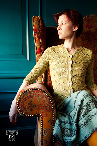 And…drumroll…Prize Three! The creativity prize goes to the divine Sallywool. Having seen this sweater in person, I can tell you that Stephanie made a fantastic choice. Here’s what she says about Sally’s cardi:
