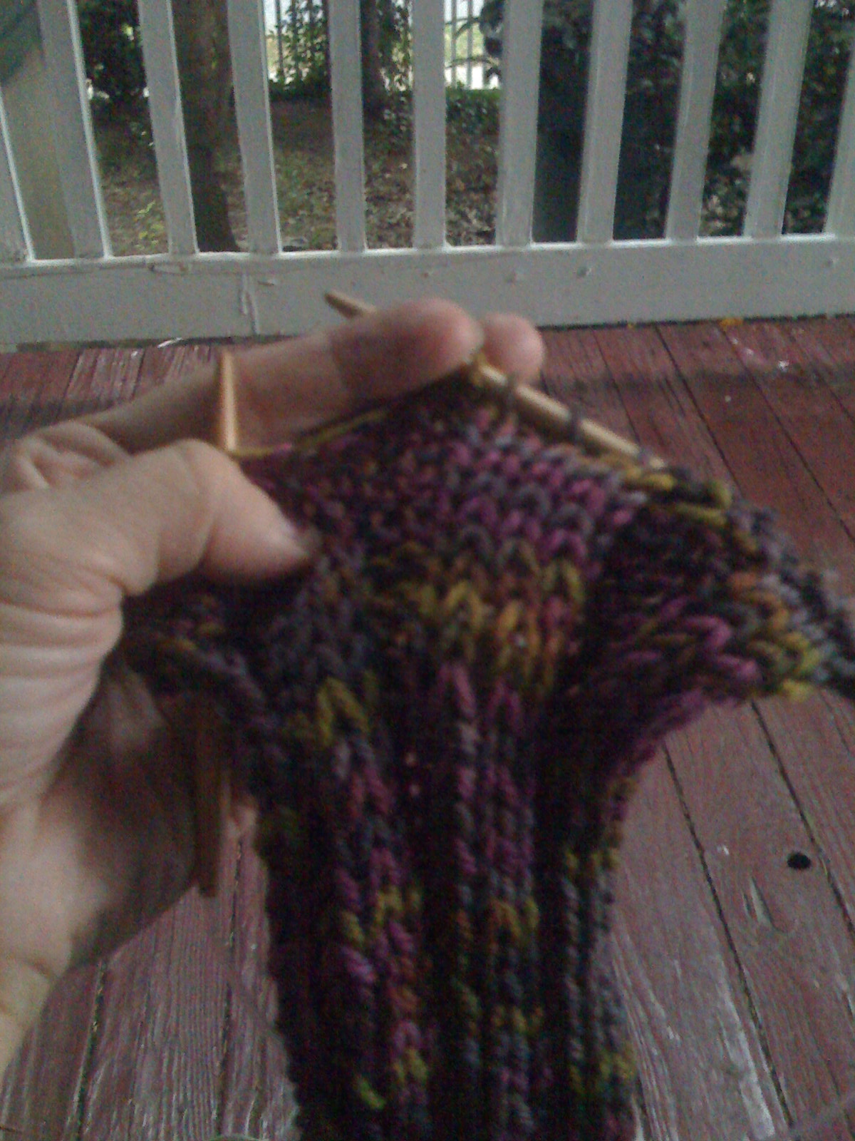 I got home and found that I had made some errors while knitting in the movies, and that Andy had gone out on some Andy-Pampering-Weekend errand, and that I had left my keys in the house. Then the thunderstorm arrived. I sat on the porch and tinked several rows and cowered at the lightning. Andy got home and all was better (and drier).