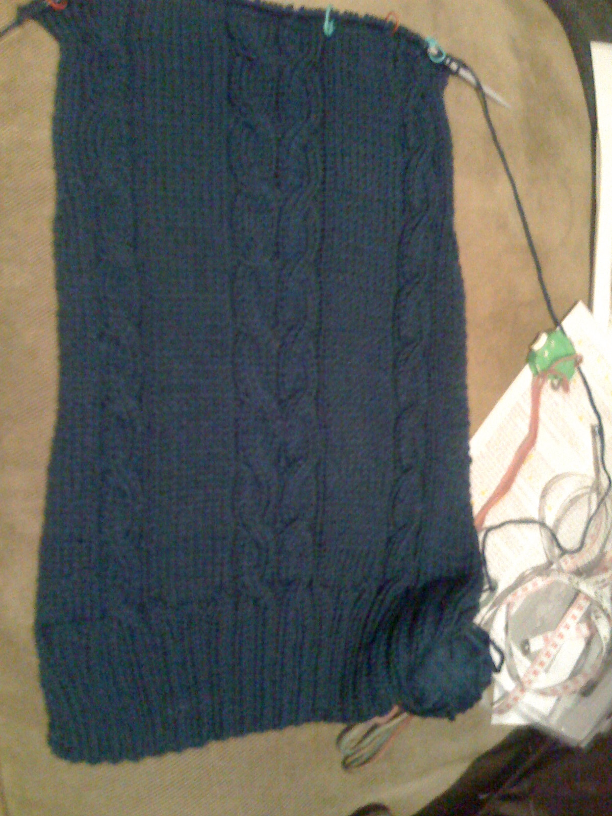 interesting..I hadn’t thought about wrapping and then using a three needle bind off to join the shoulders…Sorta too late for that now, since I am already on the left side of the sweater. But I did get some wicked shaping and a cool cable modification.