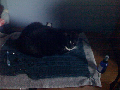 Freaking cat, nesting on my nice sweater. Freaking yarn, drawing all manner of evils to whatever I make out of it. Anyone got any good cleansing rituals?