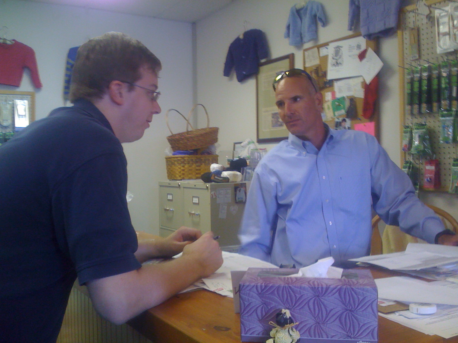 I bounced out to the car and brought Andy in; while he and Steve pored over Google Maps, I talked to Maggie about knitting and teaching and just how much we enjoy them both.
