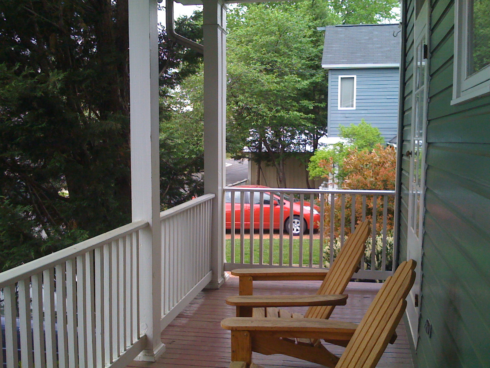 Here we have two views from our porch. I have to assume that if I can see their house…they can see my house. Do they want to see my pajamas as well? To hear my delicate snore? I mean, I guess we could ask, but…