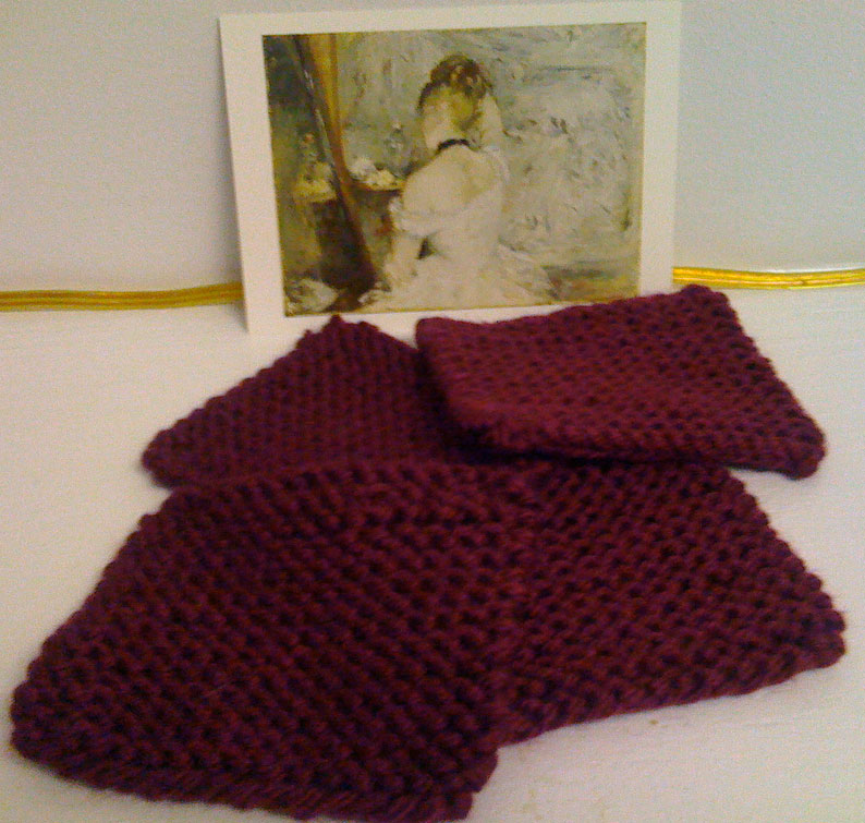 When I read about Codepink’s Radical Act of Knitting for Mother’s Day, calling for pink and green knit squares for a “White House Cozy,” I felt Mom needed a few squares for herself out there. I’ve never been involved with Codepink, and I try not to be political in this blog, but Mom and I protested together a few times – against apatheid in South Africa, against the first Gulf War – and she taught me to stand up for what I believed in. I do believe in peace, in supporting our troops by bringing them home. And so there will be four pink squares with Mom’s name pinned to them up there this weekend.