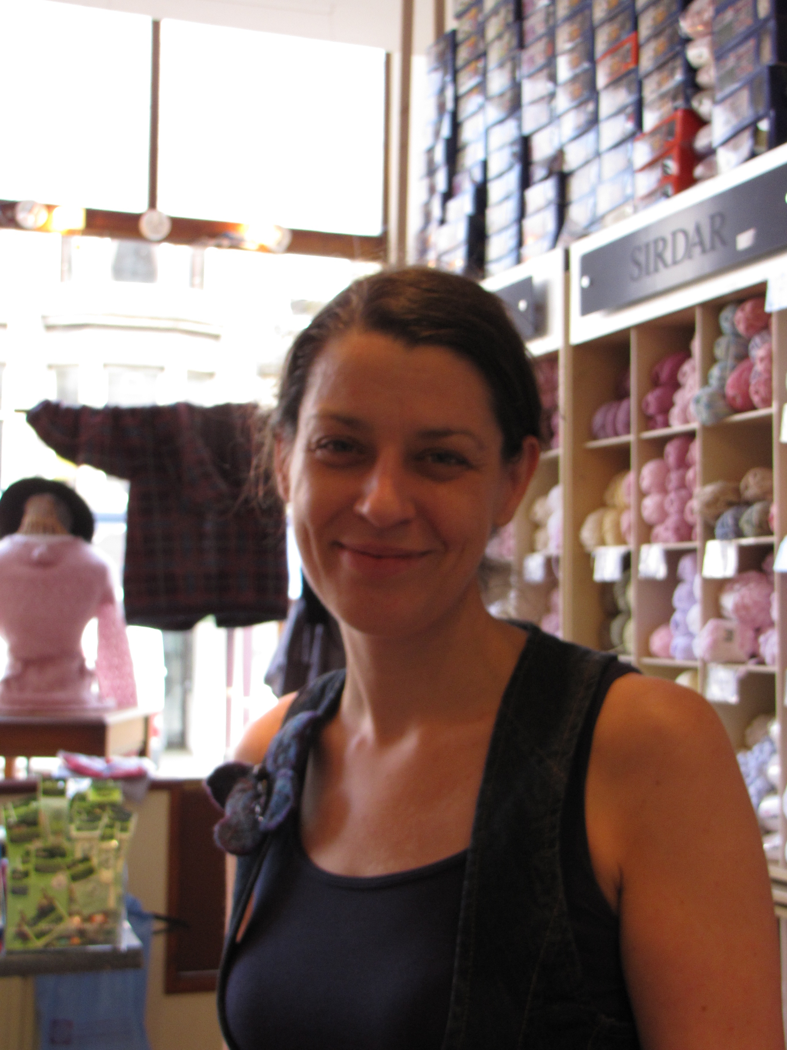 Carol does much of her patterning for Rowan (can you say dream job?) and commutes to Stirling from Edinburgh each day to work and teach in the shop. Go find her patterns – they’re luuurvely. [Did I mention the knitted Audrey Hepburn? Or the crocheted Filigree Lace Choker?]