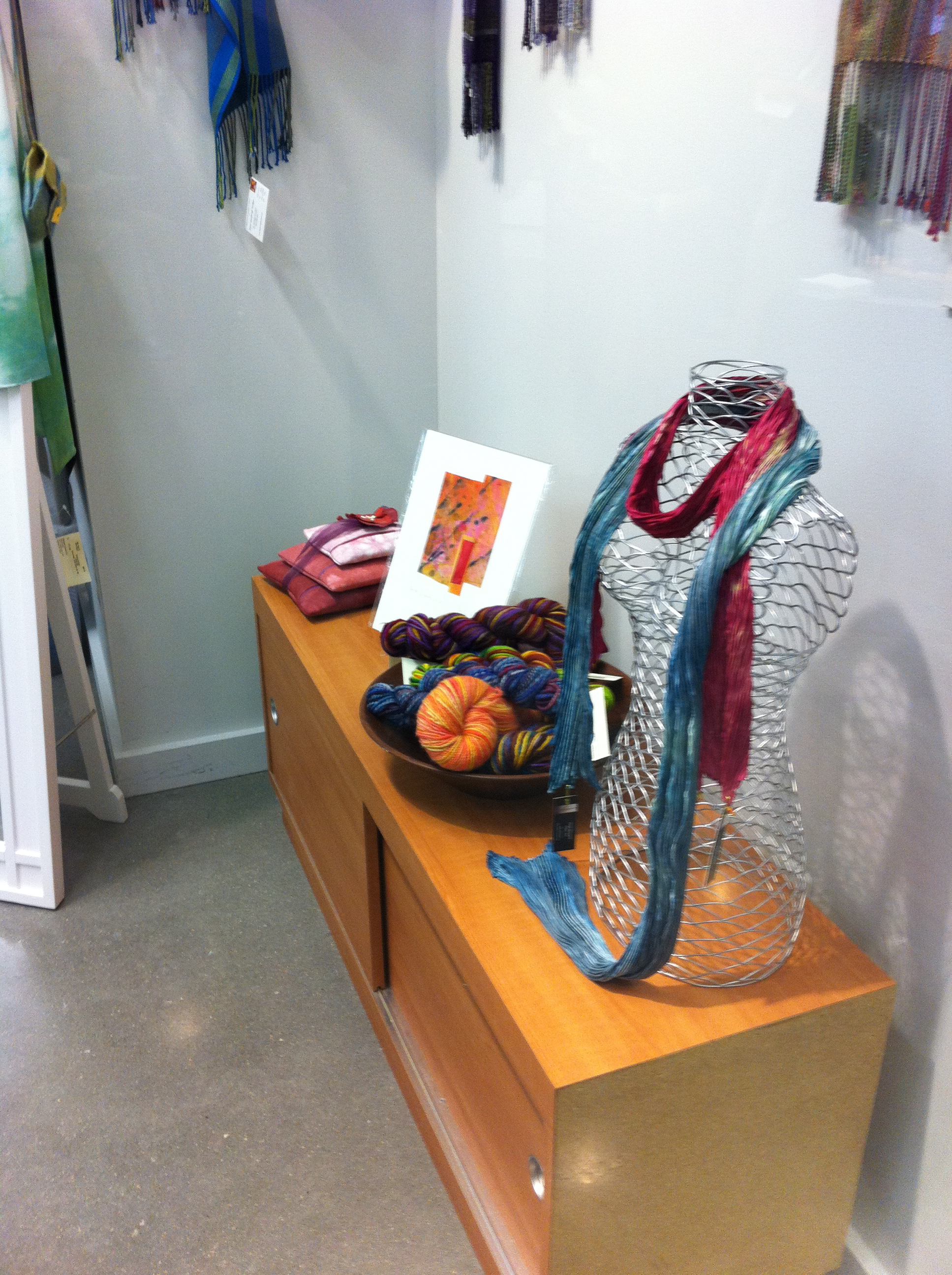 Buzzing from this first knitting find, I was over the moon when I found some actual yarn at VisArts, in the Fiber Arts section of their studios. Mr. Trask let me alone for a moment, and I’m afraid I may have…purchased some yarn. [You guys can tell the yarn giveaway isn’t going to be over any time soon.]