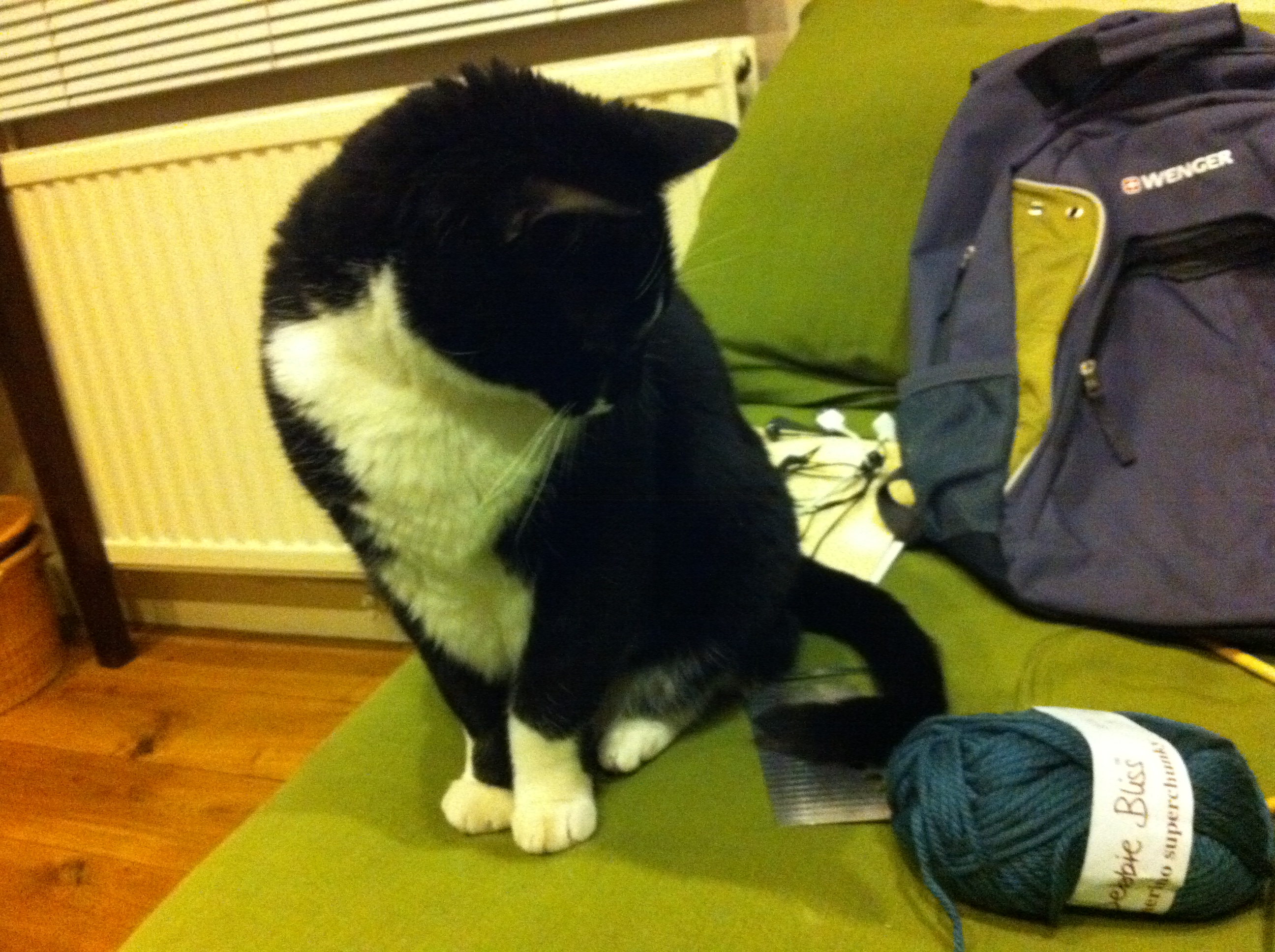 You’ll notice that there are no buttons on the thing. I bought the cutest buttons at fibre space while I was home, and now I can’t find them. This is why I shouldn’t tidy up! I always shove something important, like all of my tapestry needles, into an odd place, like the inbox where we keep unpaid bills, and then it takes me two months to recover whatever it was. Bah!