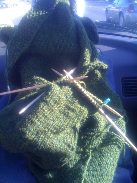 The point is that I will be in a car, but I’ll be trying to blog from my iPhone, using the nifty WordPress iPhone app. We’ll see how it goes! I’m excited to get out of Dodge again and to start work on my sample of the Wendy Bernard Flair jacket (rav lnk), which I’ll be teaching for Knit-A-Gogo in October. I bought some beautiful tweed yarn — New England Highland (rav lnk) from Harrisville Designs — from Knit Happens for this sweater. Cannot wait. [By the way – they have a sale going on this weekend. Run! Don’t walk! Go! Now!]