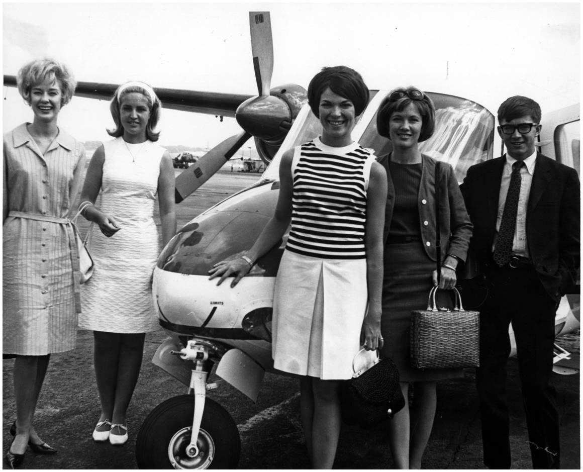Ready for flight! Mom’s the looker in the middle, with fellow staffers from Speaker Albert‘s office. I do wish I knew the story behind this picture.